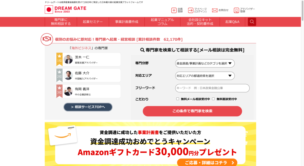 ドリームゲートは、起業家支援プラットフォームとして、多くの事業計画作成に役立つ資料やツールを提供しています。特に、事業計画書のダウンロードやテンプレートが豊富で、具体的な記入例を参考にしながら、より実践的な計画書を作成することが可能です。また、ドリームゲートでは、専門家のアドバイスやコンサルティングを受けられるサービスも提供されており、より具体的で個別のアドバイスが必要な際には非常に有効です。特に、創業者やスタートアップ企業向けに充実したサポートを行っており、事業計画を策定する際に大いに参考となるでしょう。