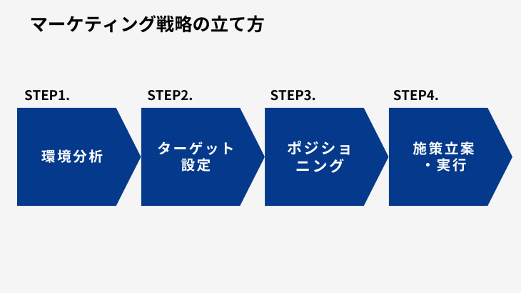 ここでは、マーケティング戦略を立てるための具体的なステップを詳しく解説します。まずは環境分析から始め、ターゲットの設定、ポジショニング、そして具体的な施策の立案と実行について順を追ってご紹介します。
