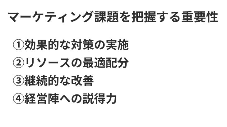 以下では、なぜマーケティング課題を把握することが重要なのか、その理由を詳しく見ていきます。