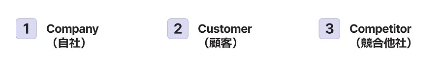 自社(Company)、顧客(Customer)、競合(Competitor)の3つの視点から分析するフレームワーク
