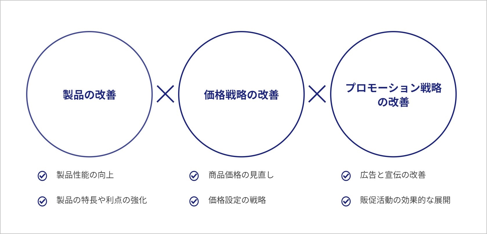 ここからは、新規事業のマーケティングミックスを改善するための具体的な方法3つを解説します。これらの改善方法を実践することで、新規事業のマーケティングミックスを効果的に改善し、競争力を高めることが重要です。