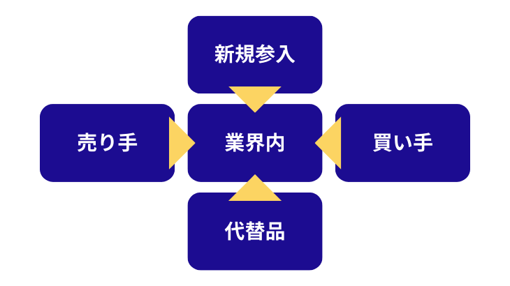 このフレームワークを活用することで、事業のリスクを低減し、競争優位を確立する方法を見つけることができます。たとえば、新規参入が難しい業界で事業を構築する際には、参入障壁を生かして独自の優位性を築く戦略が考えられます。