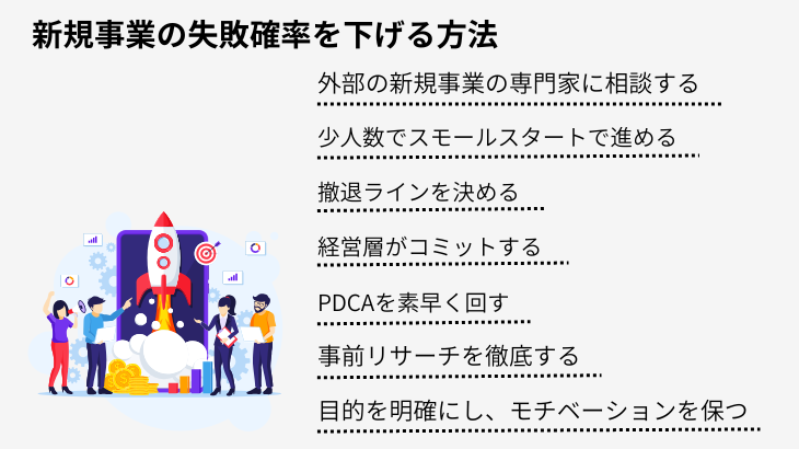新規事業を成功に導くためには、リスクを最小限に抑える工夫や準備が必要です。失敗の確率を下げ、成功の可能性を高めるための効果的な方法をいくつかご紹介します。