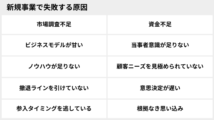 新規事業には新たなアイディアや挑戦が求められますが、その一方で多くの企業が壁に直面し、事業失敗に終わっているケースもあります。